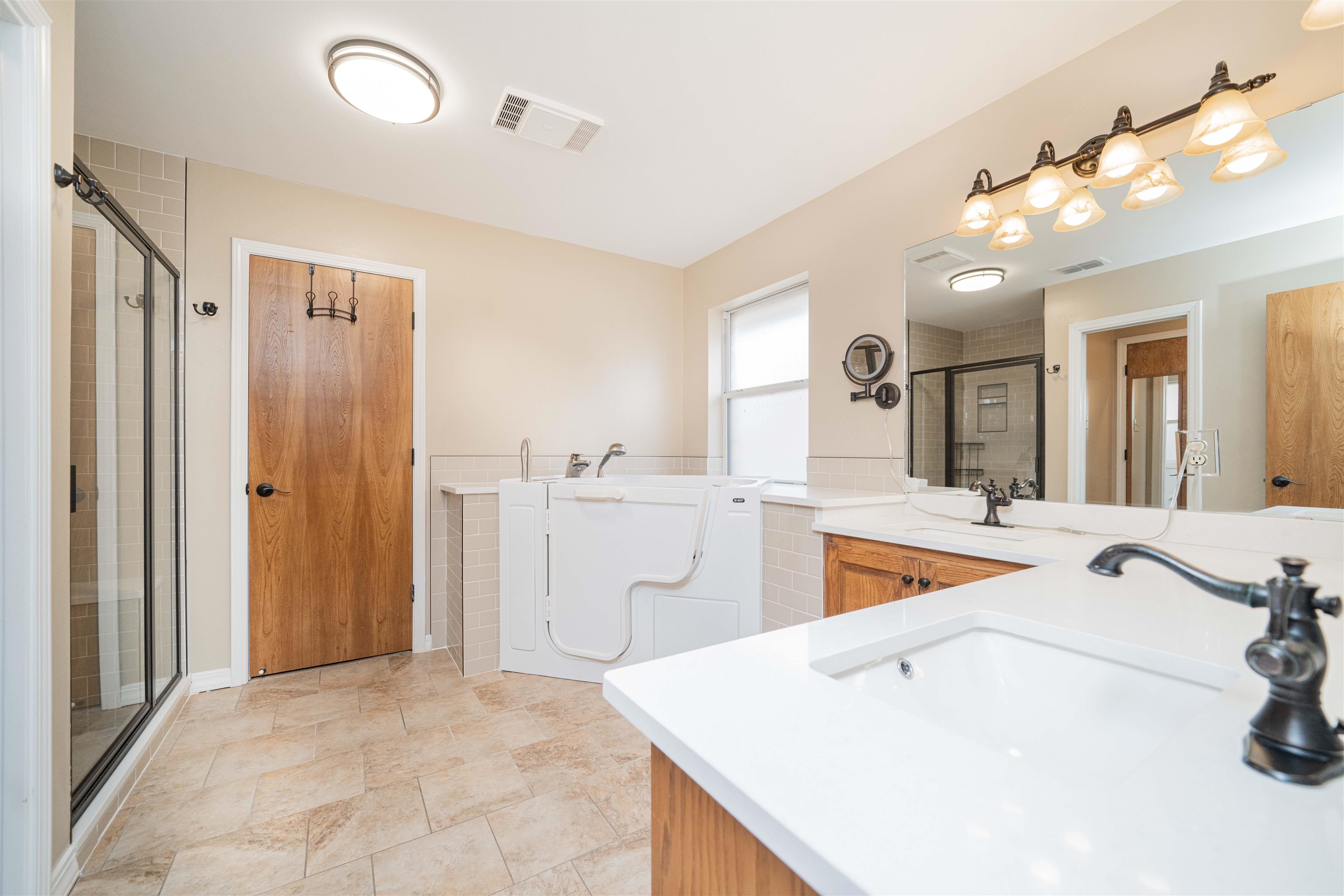 Immaculately updated (since 2018) 4/3/2 home. Crown moldings, trey ceilings, Formal dining, formal living used as an office with added custom-built bookshelves, 3 separate bedroom locations, master bath on the north end of the home, two bedrooms with bath & hallway on the south end of the home, and a private bedroom with bath off the hallway on the southeast end of the home. Master has oversized shower and a senior tub. Private door from master to the heated and cooled enclosed skylit patio. Plantation shutters, motorized shades, tile and laminate flooring, bath updates with quartz counter tops, porcelain sinks, kitchen updates with granite counters and all new appliances, roof and gutters in 2024, complete heat and air system replaced in March of 2023. Youi will not be disappointed.